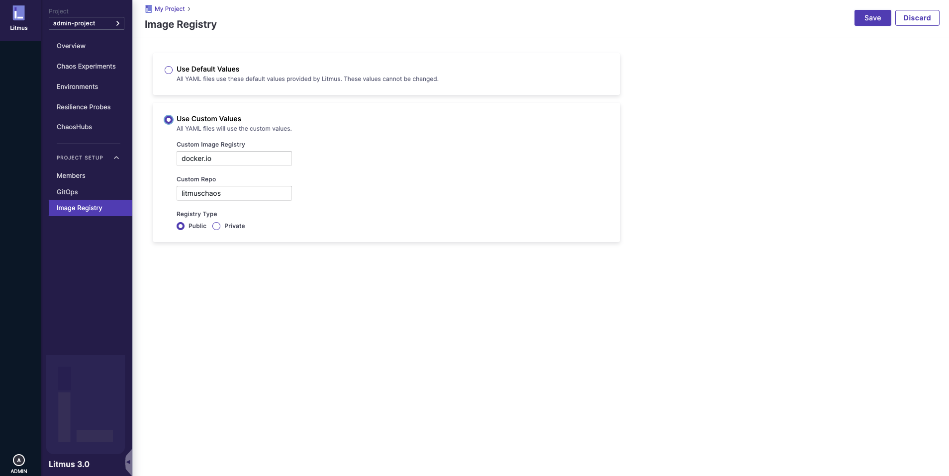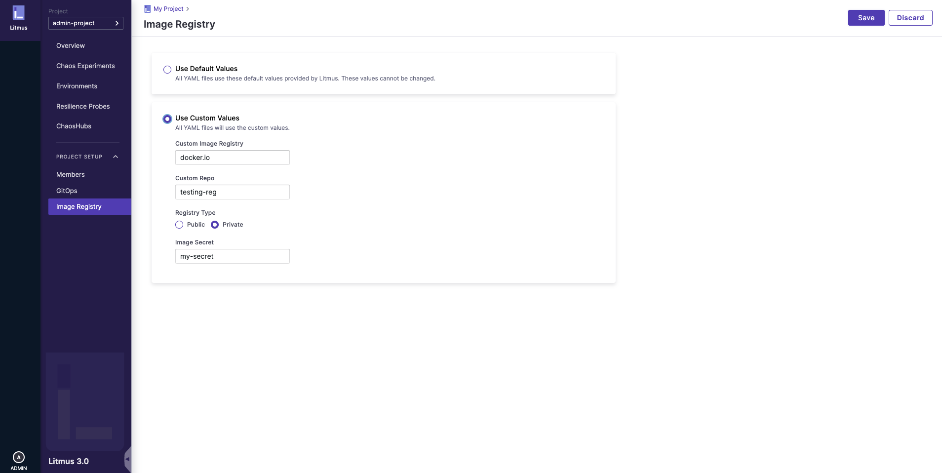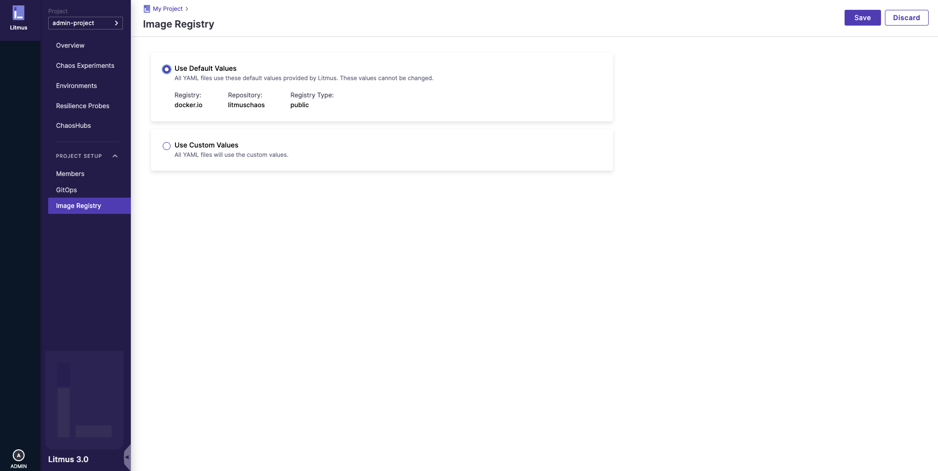With ChaosCenter, you get the option to use your own custom image registries for Chaos experiments.